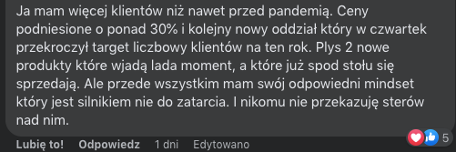 Jak mawia Warren Buffett: Najlepszą ochroną przed inflacją jest Twoja osobista zdolność do zarabiania. Przedsiębiorcy solidnie wdrażający wiedzę, którą się dzielimy, przetrwali 2 lata pandemicznego rollercoastera, a wielu z nich jeszcze bardziej rozwinęło swoje firmy. Podobnie będzie teraz. Pytanie… czy tym razem też pozwolisz sobie pomóc?